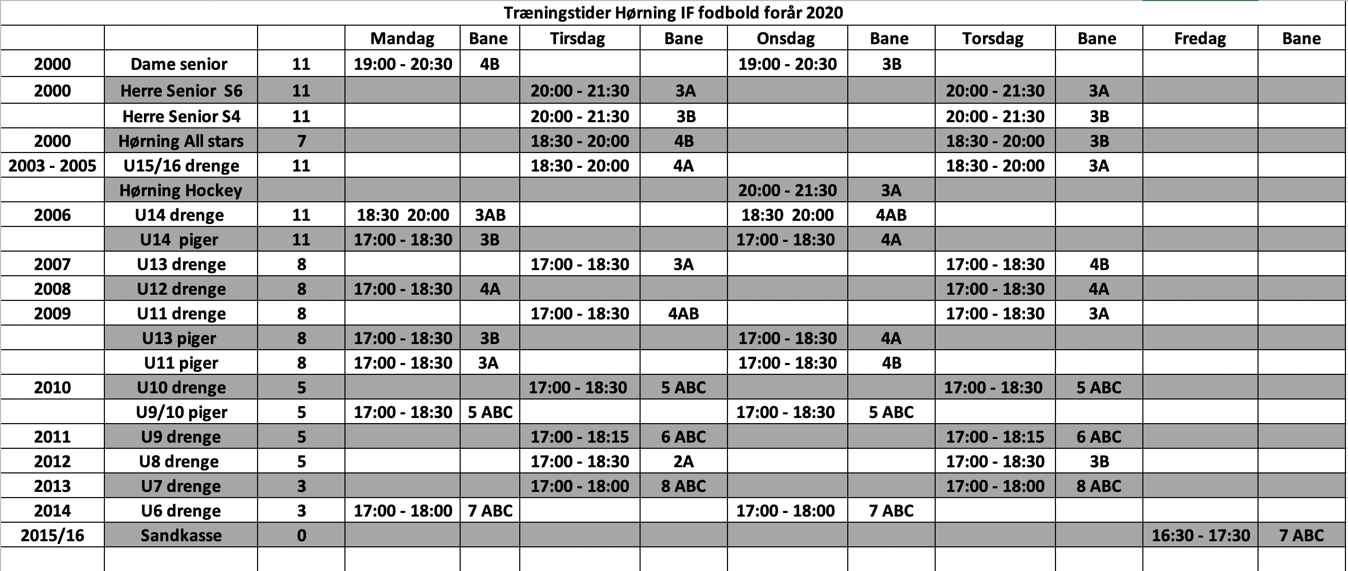 Træningstiderne er opdateret per 17/6.