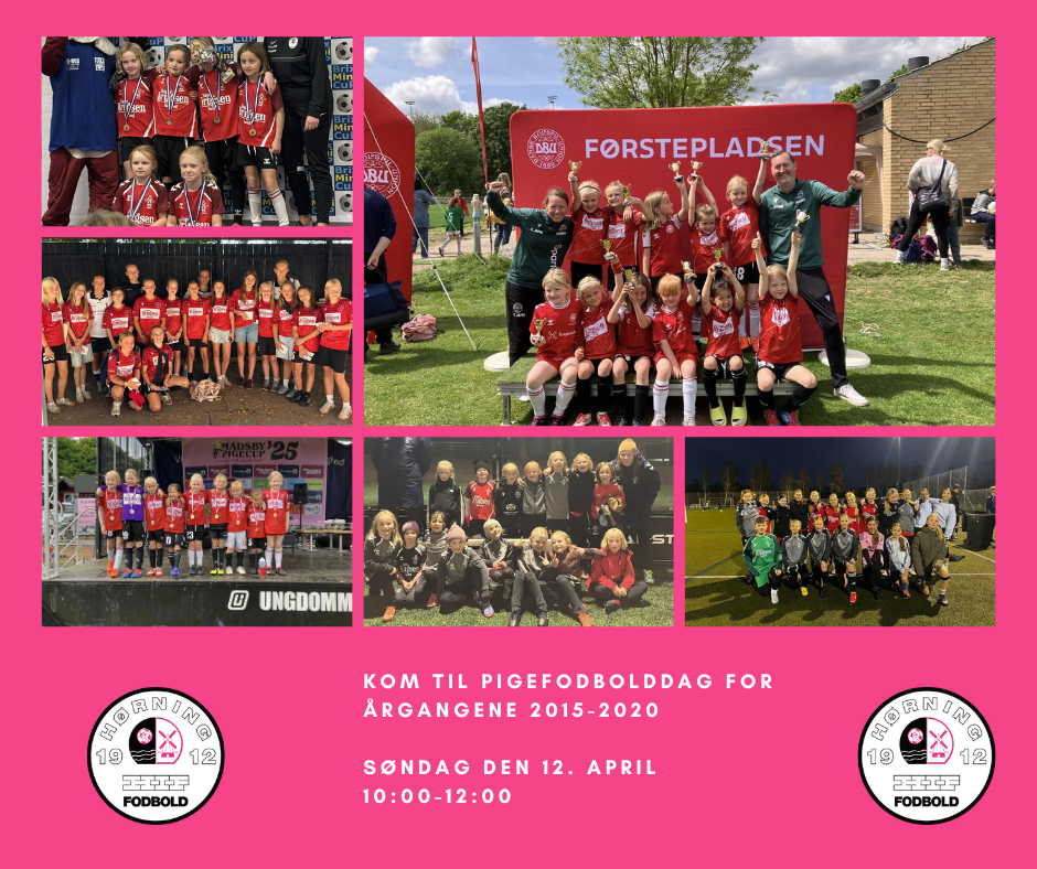Søndag den 12. april kl. 10:00-12:00 inviterer vi til pigefodbold på banerne i Hørning, hvor alle piger fra årgang 2015-2020 er velkomne.