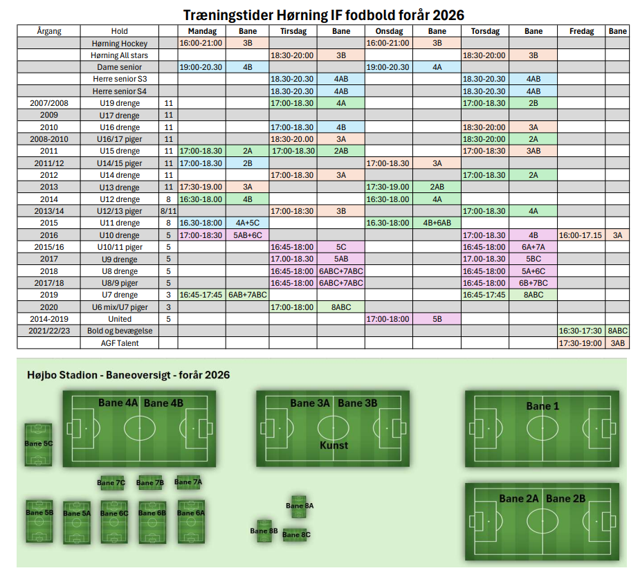 Forårstræningstider 2026
